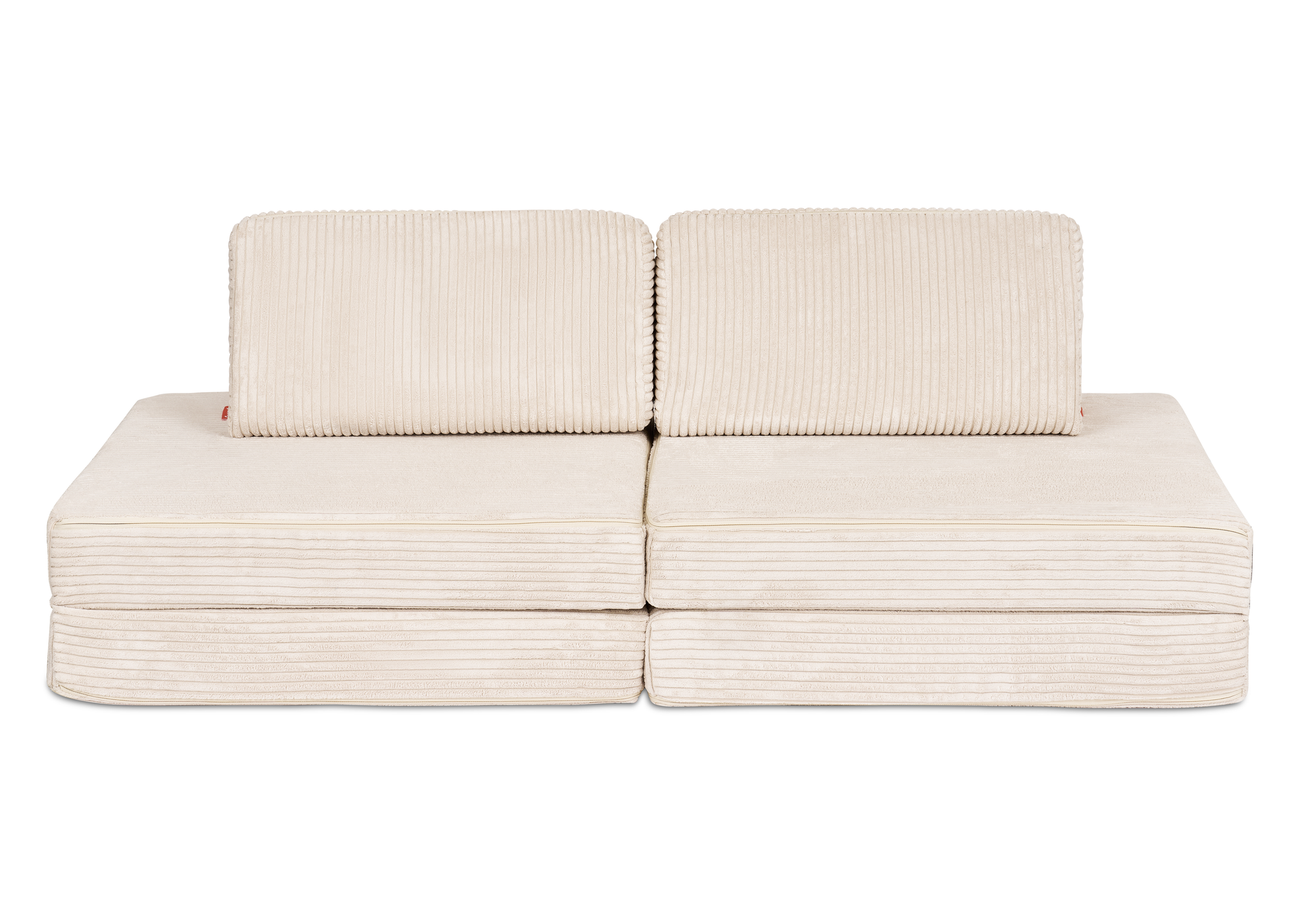 Su dydžiu 130 × 65 × 46 cm ir svoriu apie 10 kg ši sofa yra ne tik kompaktiška, bet ir lengvai perkeliama. Mažieji gali patys ją perstatyti ir kurti vis naujus žaidimų pasaulius – nuo urvų ir laipiojimo kalnelių iki poilsio kampelių. Ji maždaug 35 % mažesnė nei originali Funzy sofa, todėl idealiai tinka mažiems kambariams ar butams.